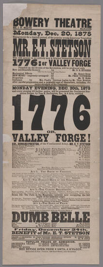 Monday evening, May 18, 1857 will be presented an entire new historical drama in three acts, written by Mr. R. Johnston, called "Jacobe Leisler; or, New York in 1691"
