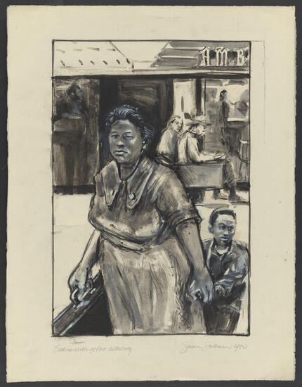 Untitled [Dinner scene with two men in booth with coffee cups]