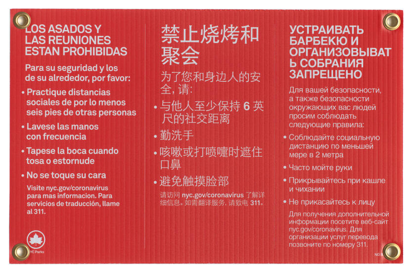 Barbecuing and Gatherings Prohibited (Spanish, Chinese, Russian)