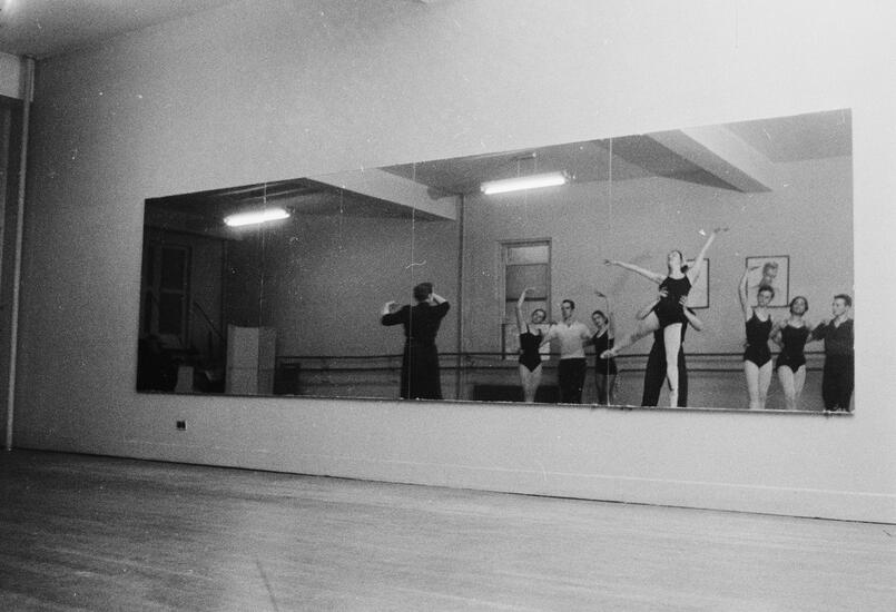 Photographs taken at the Rehearsal Club, a boarding house for young women pursuing a career in theater. Depicts residents standing on the front steps of the brownstone building located on West 53rd Street; posing for individual portraits; spending time in their shared bedrooms; and working at their jobs in nightclubs, dance studios, and theaters.