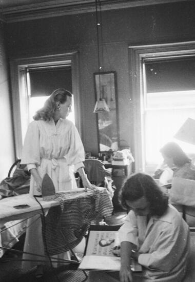 Photographs taken at the Rehearsal Club, a boarding house for young women pursuing a career in theater. Depicts residents standing on the front steps of the brownstone building located on West 53rd Street; posing for individual portraits; spending time in their shared bedrooms; and working at their jobs in nightclubs, dance studios, and theaters.