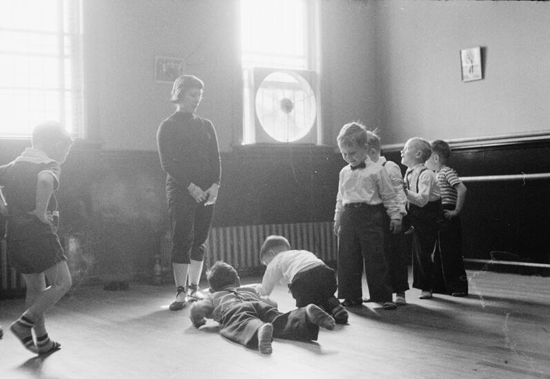 Photographs taken at the Rehearsal Club, a boarding house for young women pursuing a career in theater. Depicts residents standing on the front steps of the brownstone building located on West 53rd Street; posing for individual portraits; spending time in their shared bedrooms; and working at their jobs in nightclubs, dance studios, and theaters.