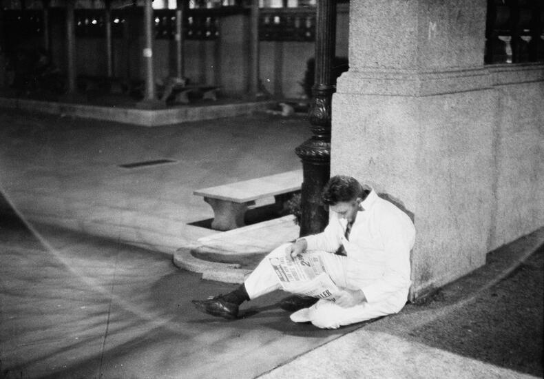 Photographs of people and places in Brooklyn associated with the four teenage boys known as the Brooklyn Thrill Killers. Depicts a grocer, a women working at a soda shop, a dry cleaner, a couple on a bench, a man on the beach under the Manhattan Bridge, a woman in an apartment, and teenagers walking down a street.