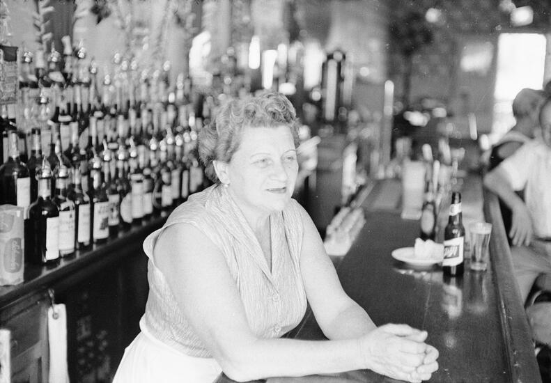Photographs of people and places in Brooklyn associated with the four teenage boys known as the Brooklyn Thrill Killers. Depicts a grocer, a women working at a soda shop, a dry cleaner, a couple on a bench, a man on the beach under the Manhattan Bridge, a woman in an apartment, and teenagers walking down a street.