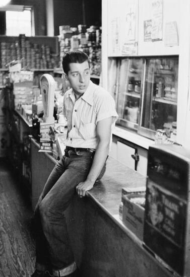 Photographs of people and places in Brooklyn associated with the four teenage boys known as the Brooklyn Thrill Killers. Depicts a grocer, a women working at a soda shop, a dry cleaner, a couple on a bench, a man on the beach under the Manhattan Bridge, a woman in an apartment, and teenagers walking down a street.