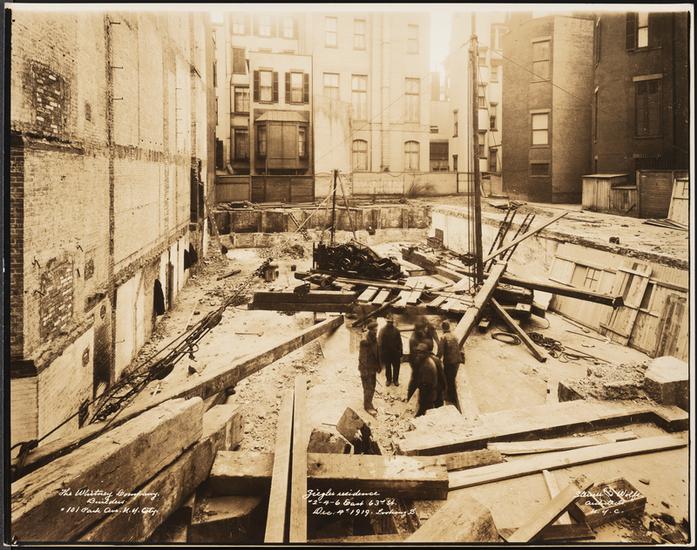 Ziegler residence. #2-4-6 East 63rd St. N.Y.C. View looking S. at [...] under bay window on north side of #5 East 62nd St. [...] removed for safety to be replaced later