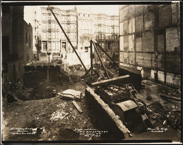 Ziegler residence. #2-4-6 East 63rd St. N.Y.C. Condition of foundation under bay window on N. wall of #5 East 62nd St. Loose [...] removed temporarily for safety-sake