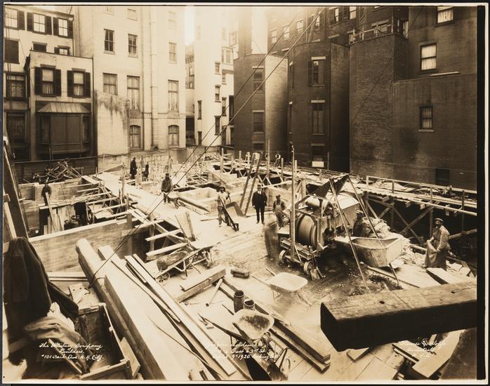 Ziegler residence. #2-4-6 East 63rd St. N.Y.C. Condition of foundation under bay window on N. wall of #5 East 62nd St. Loose [...] removed temporarily for safety-sake