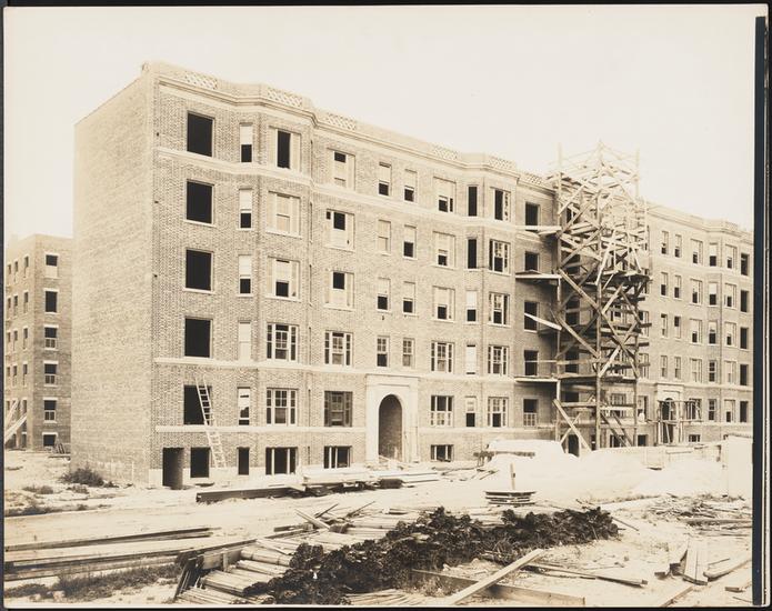 27th or 28th Street. Jackson Heights apartments, exterior view under construction.