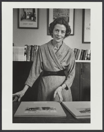 [Grace M. Mayer with assisstant Patricia Pulling at the opening of Currier and Ives exhibiton at the Museum of the City of New York.]