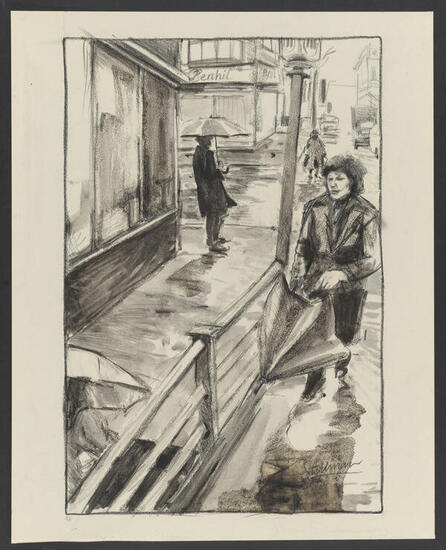 Untitled [People on the street with umbrellas]