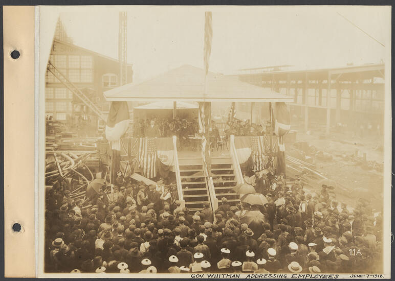 GOV. WHITMAN ADDRESSING EMPLOYEES [EMPLOYEES ASSOCIATION OF MORSE DRY DOCK AND REPAIR CO.]