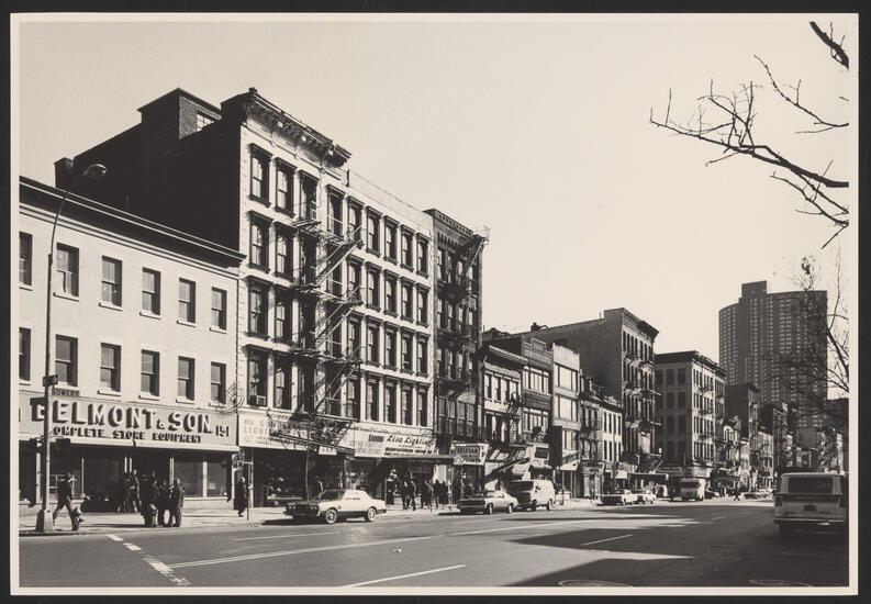 VIEW UPTOWN FROM END OF BOWERY AT E. 4TH STREET (NOVEMBER 1975)