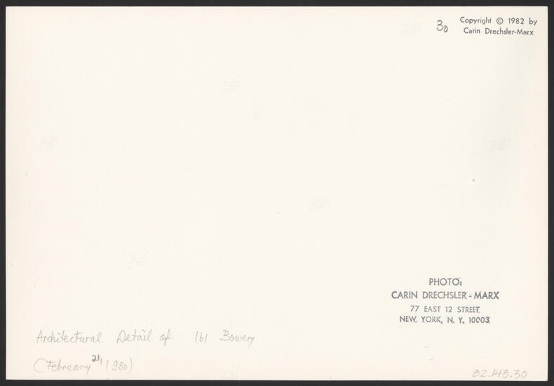 ARCHITECTURAL DETAIL OF 161 BOWERY (FEBRUARY 21, 1980)