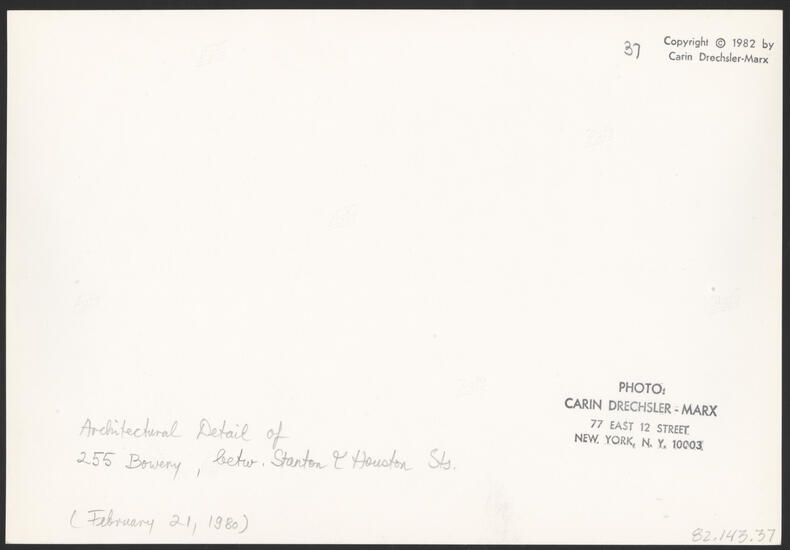 ARCHITECTURAL DETAIL OF 255 BOWERY, BETW. STANTON & HOUSTON STS. (FEBRUARY 21, 1980)