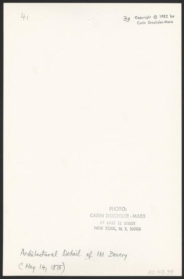 ARCHITECTURAL DETAIL FROM 185 BOWERY (MAY 14, 1975)