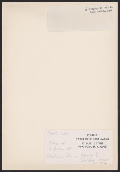 STATUE OF CONFUCIUS AT CONFUCIUS PLAZA, BOWERY & CHATHAM SQUARE (MARCH 1981)