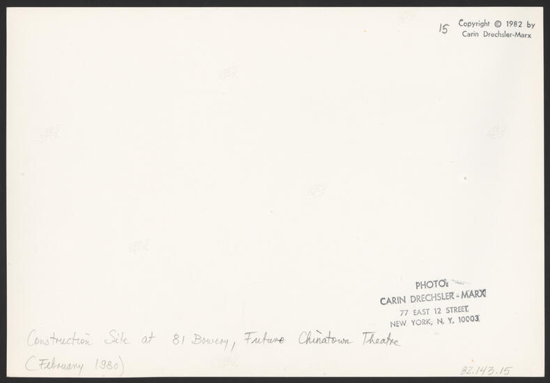 CONSTRUCTION SITE AT 81 BOWERY, FUTURE CHINATOWN THEATRE (FEBRUARY 1980)