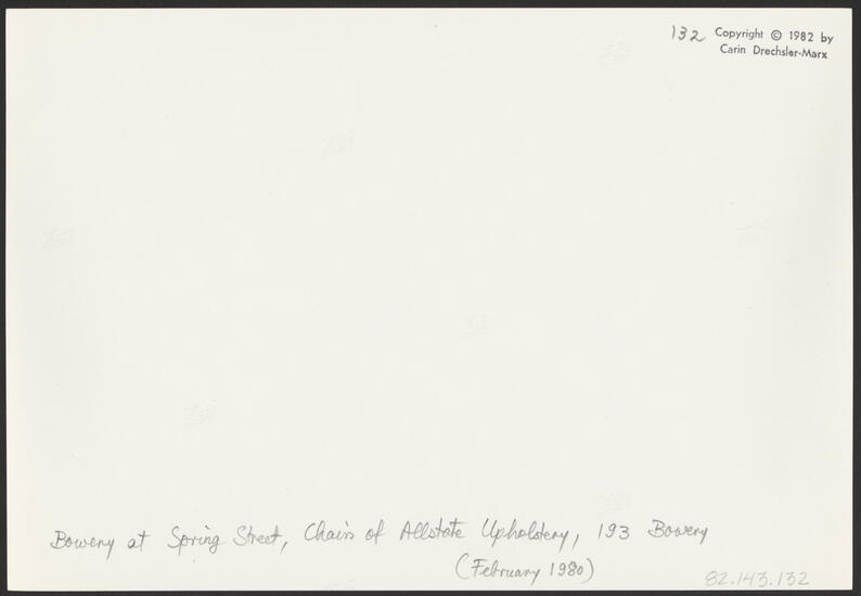 BOWERY AT SPRING STREET, CHAIRS OF ALLSTATE UPHOLSTRY, 193 BOWERY (FEBRUARY 1980)