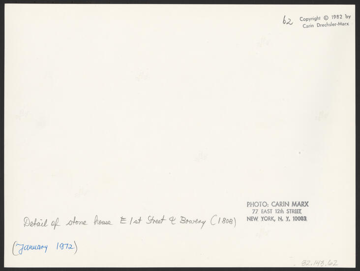 DETAIL OF STONE HOUSE E. 1ST STREET & BOWERY, 1808 (JANUARY 1972)