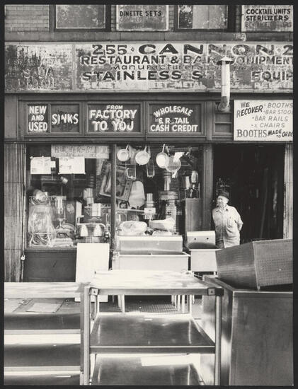 RESTAURANT SUPPLY STORE, DETAIL, 255 BOWERY (OCTOBER, 1975)