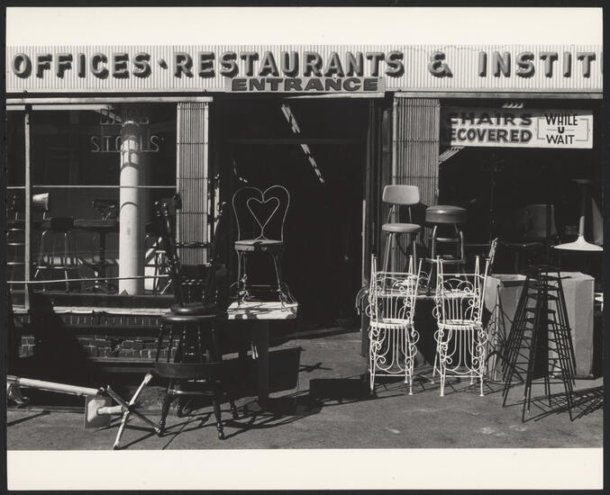 BOWERY AT SPRING STREET, CHAIRS OF ALLSTATE UPHOLSTRY, 193 BOWERY (FEBRUARY 1980)