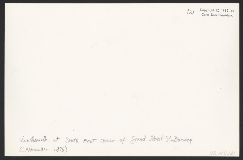LUNCHEONETTE AT SOUTH EAST CORNER OF GRAND STREET & BOWERY (NOVEMBER, 1975)