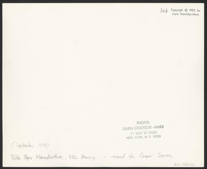 TABLE TOPS MANUFACTURE, 332 BOWERY -- MOVED TO COOPER SQUARE (SEPTEMBER 1975)