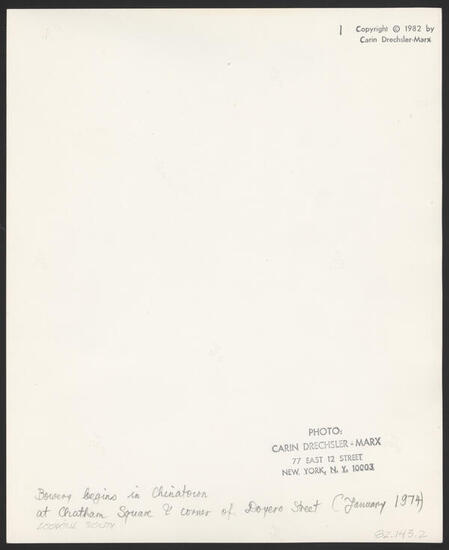 BEGINNING OF BOWERY IN CHINATOWN VIEW FROM CONFUCIUS PLAZA (FEBRUARY 19, 1980)