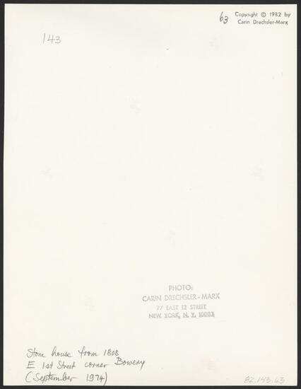 STONE HOUSE FROM 1808, E. 1ST STREET CORNER BOWERY (SEPTEMBER 1974)