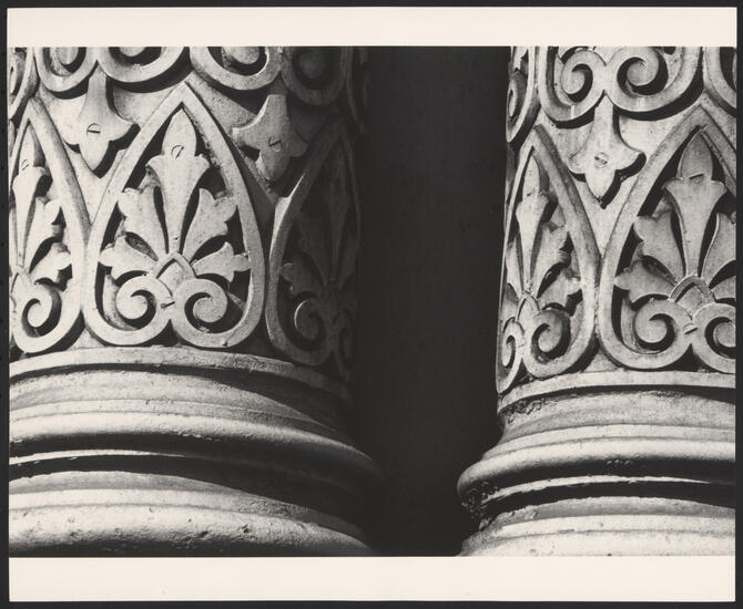 BOUWERIE LANE THEATRE, 330 BOWERY, ARCHITECTURAL DETAIL OF CAST IRON COLUMNS, 1874 (PHOTOGRAPH: MAY 8, 1975)