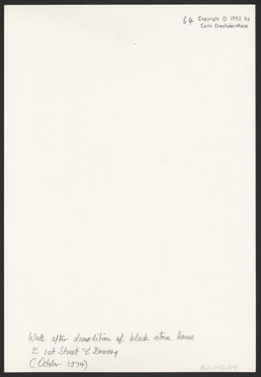 WALL AFTER DEMOLITION OF BLACK STONE HOUSE, E. 1ST STREET & BOWERY (OCTOBER 1974)