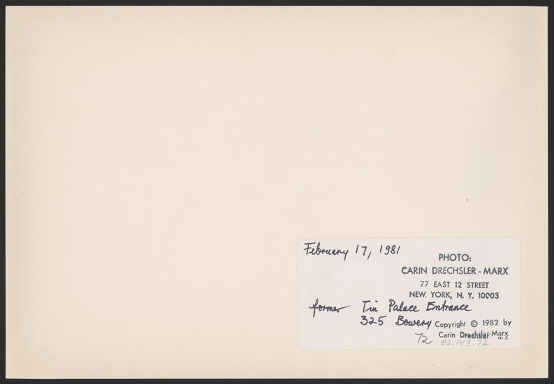 FORMER TIN PALACE ENTRANCE, 325 BOWERY (FEBRUARY 17, 1981)