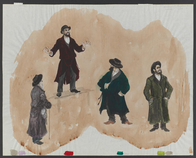 FIDDLER ON THE ROOF WATERCOLOR SKETCH OF THREE FIGURES.