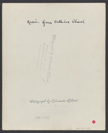 Portrait of a bishop holding a crucifix and his congregation at a Russian Greek Orthodox Church performing a ceremony. A woman in the foreground is bending down lighting candles in a basket. A basket holding what appear to be Ukranian Easter eggs is visible.