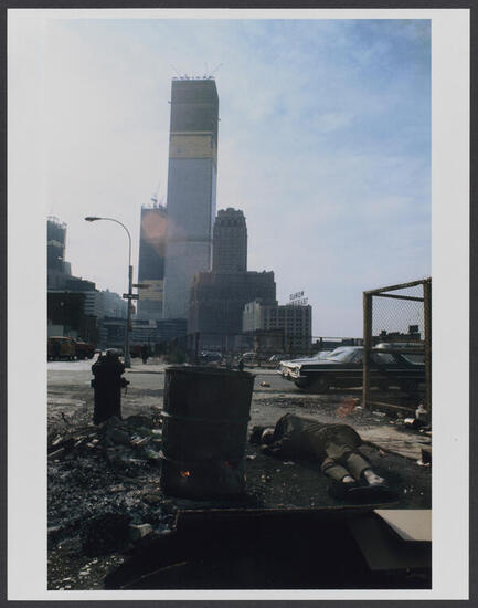 View of the World Trade Center under construction from Duane Street, Manhattan, 1970