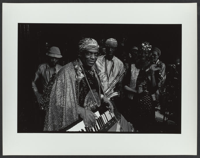 Halston, Roy Cohn, and Steve Rubell at a Victor Hugo performance at The Mudd Club in New York City