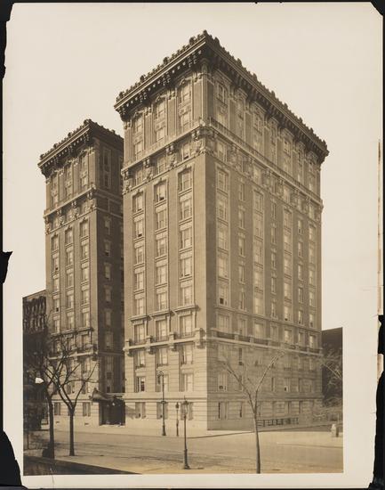 285 Central Park West corner West 89th Street. St. Urban Apartments, watercolor rendering by Hughson Hawley, 1905.