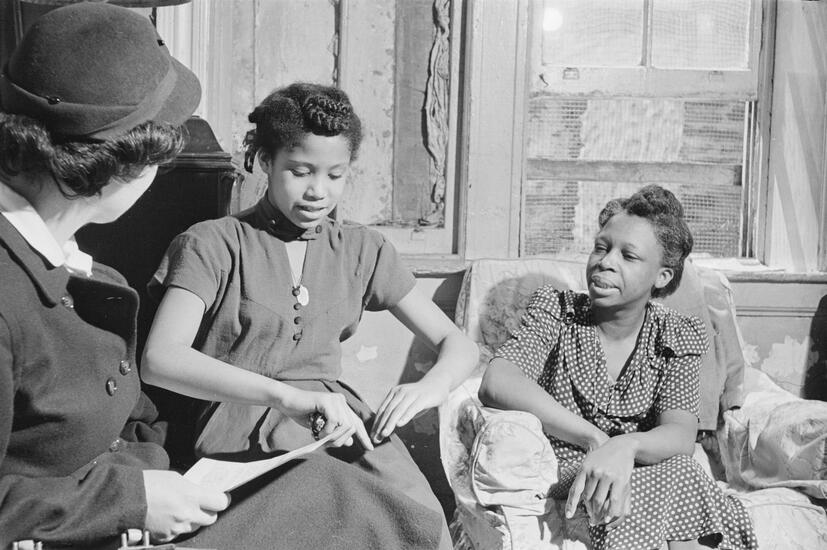 Photographs of Puerto Rican families in the city. Depicts children in an art class; a block party; a group of young men sitting on the sidewalk playing guitar; church services; people gathered for a wedding; children playing in fire hydrant water, streets, swimming pools, and alleys; grocers and street vendors selling food; and families in their homes. Also depicts a family de-boarding an airplane, waiting to collect their luggage, and getting in a taxicab at the airport.