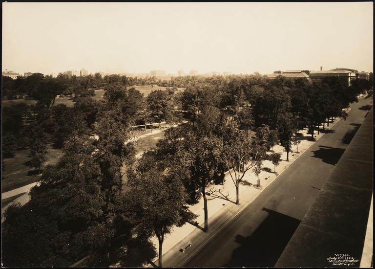 East 98th Street and Fifth Avenue. View looking northwest over Central Park from Mt. Sinai Hospital