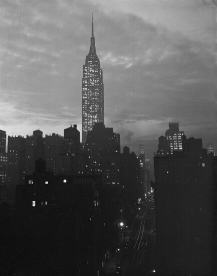 Description Photographs of the exterior of the Empire State Building, taken from below it on the street and from several streets away.