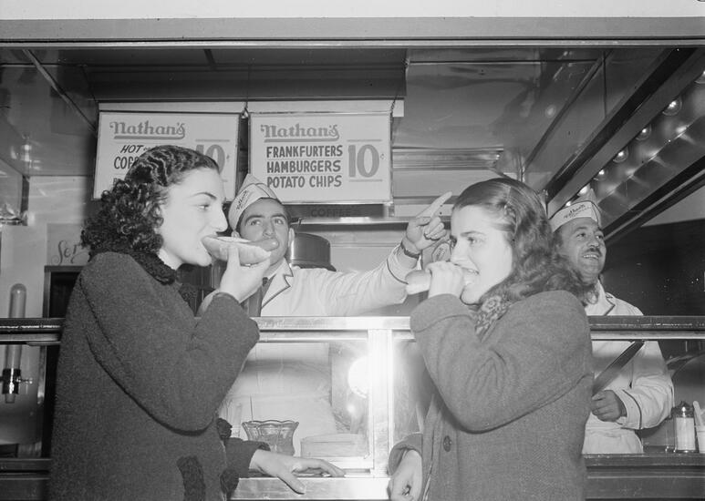 Photographs from the 1939-1940 New York World's Fair. Depicts visitors at art exhibits, eating hot dogs, and sitting on benches. Also includes an aerial view of the fair and interior office scenes.