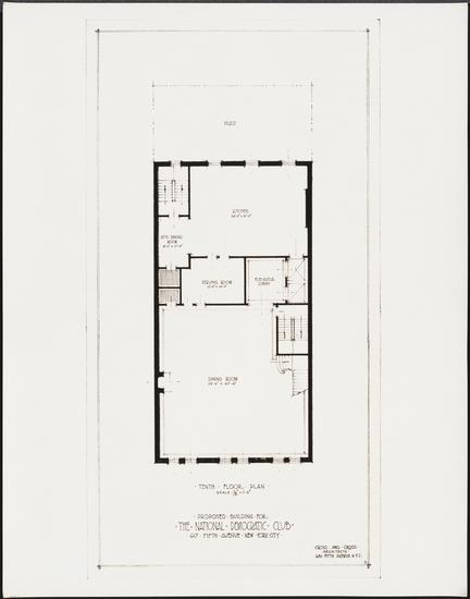 Ninth Floor Plan. Proposed Building for The National Democratic Club. 617 Fifth Avenue New York City