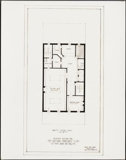 Eleventh Floor Plan. Proposed Building for National Democratic Club. 617 Fifth Avenue New York City