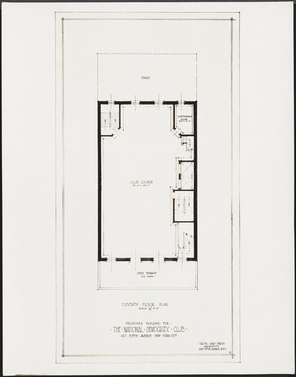 Tenth Floor Plan. Proposed Building for The National Democratic Club. 617 Fifth Avenue New York City