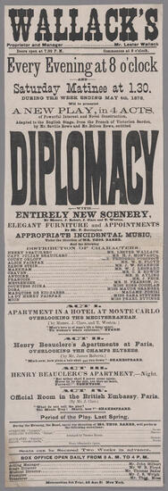 The new play in four acts, "Diplomacy", Monday, June 11, 1878, and every evening during the week, also Saturday matinee