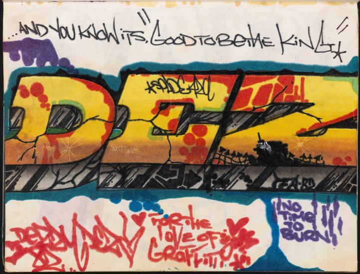 Graffiti Hall of Fame [Inside front cover of sketchbook belonging to TRC and Delta II.]