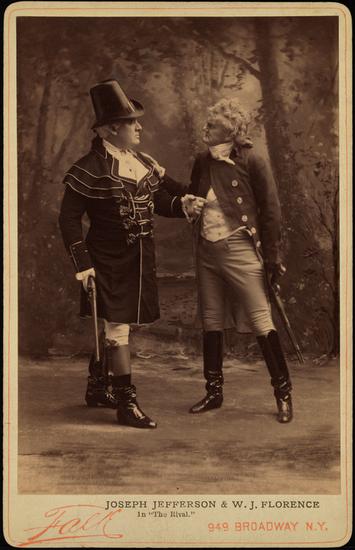 [William J. Florence as Sir Lucius O'Trigger and Joseph Jefferson as Bob Acres in "The Rivals".]