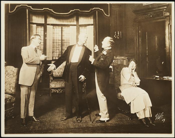 ["Seven Keys to Baldpate" theater still.]
