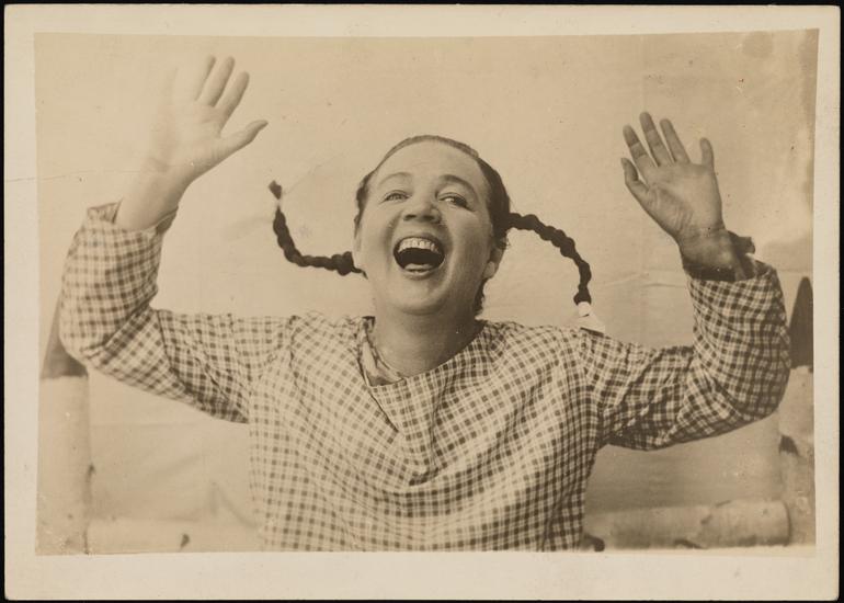 [Rose Melville in the title role of Act 1 of "Sis Hopkins".]